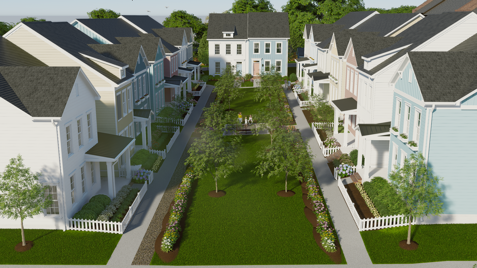 This thoughtfully designed neighborhood features hand-laid paver streets, underground utilities, and timeless architecture—all within walking distance of restaurants, breweries, Discovery Place Kids, and outdoor events in Veterans Park.