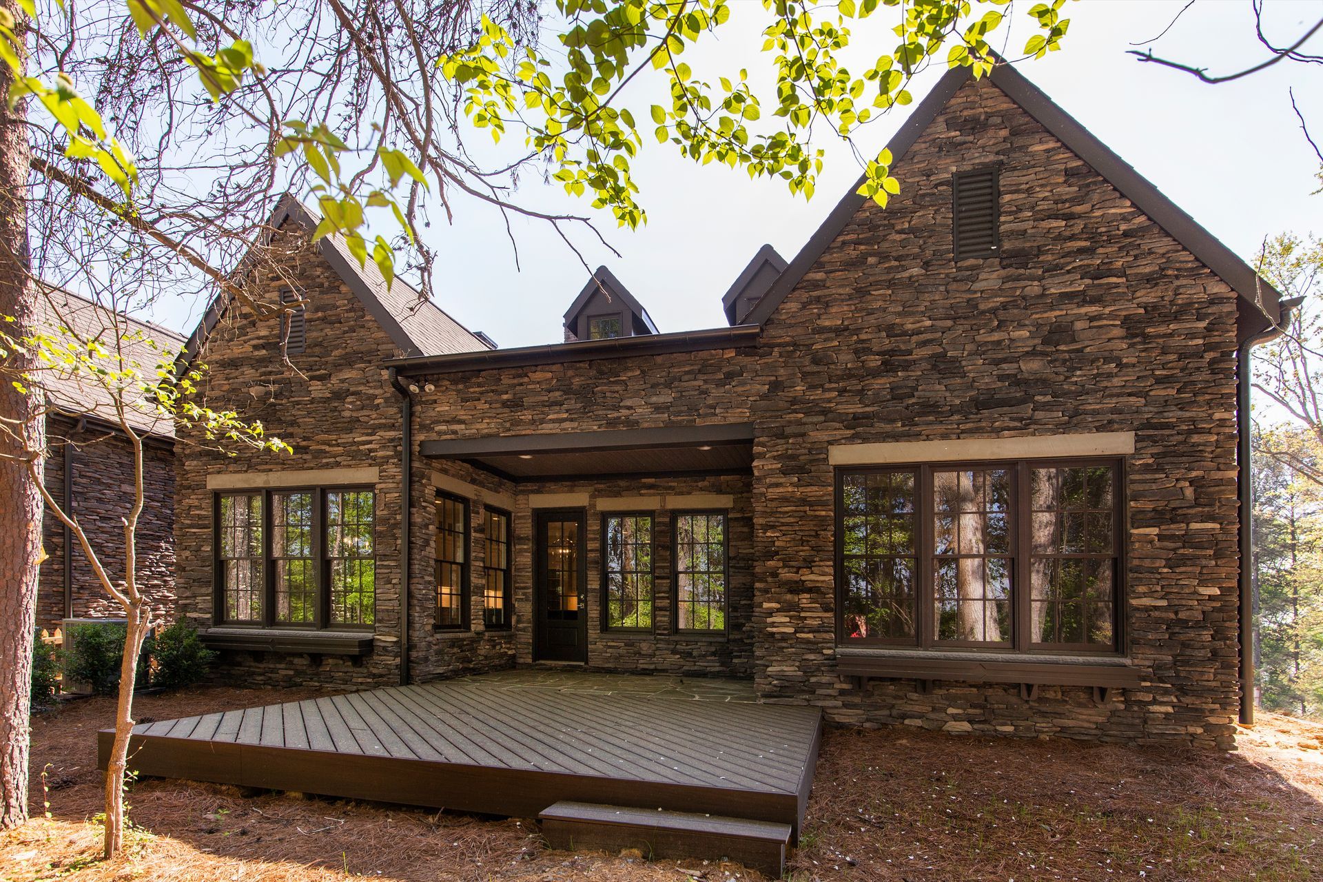 The serenity you deserve can be found in the nearly 3,000 square foot Kendal. It’s the most expansive plan we’ve designed, with enhancing your day-to-day living in mind. A natural path through the grass leads to your covered entrance. Once inside, a quaint foyer warmly welcomes you. Right nearby is a private place we call a flex room, but you may call it your library, home office, or first floor guest room as it includes access to a full size bath. Travel down the hallway into large open spaces where most of your daily living will occur. Everything has its place in the walk-in pantry, wine and conversation flow around the large kitchen island, memories are made each holiday in the dedicated dining space and adjoining living room – and all of this happens with a backdrop of woodlands and lake views. Cozying up on the couch in front of your floor-to-ceiling stone fireplace, you may never want to leave.